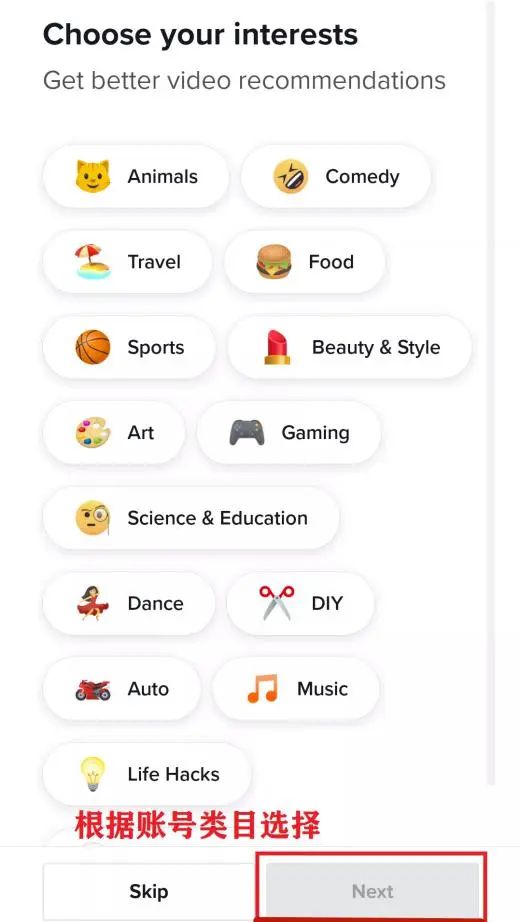 进入账号类目选择界面,选择账号垂直领域即可,可多选,一定要选择和自己将要做的账号类目一样或贴近的领域。