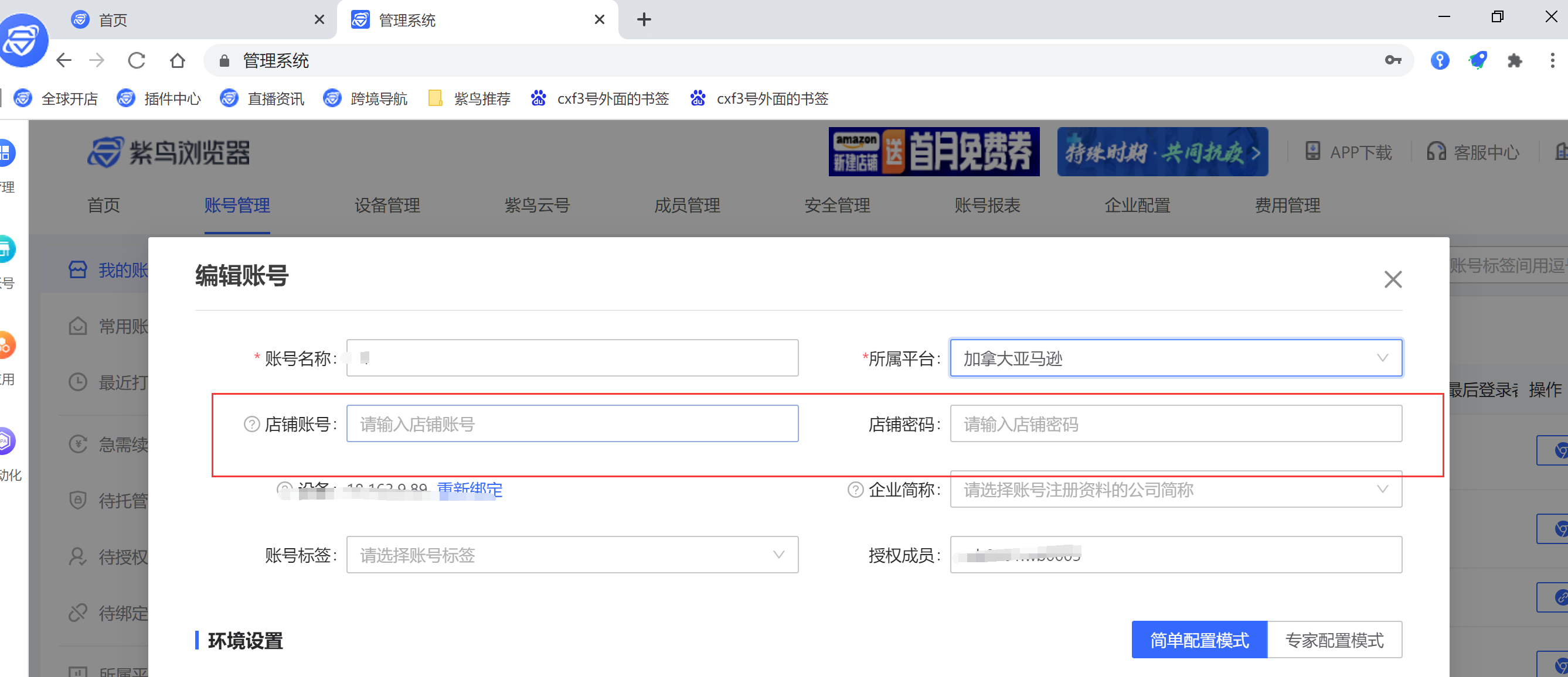 亚马逊注册店铺推荐紫鸟浏览器的小众设备和宽带设备。店铺注册成功,后续的店铺运营需要继续使用该账号和该设备进行运营。如果要换设备,必须购买同个地区的设备。其他平台的店铺注册和店铺运营可以根据平台的政策选择设备,各平台规则存在差异,仅供参考。