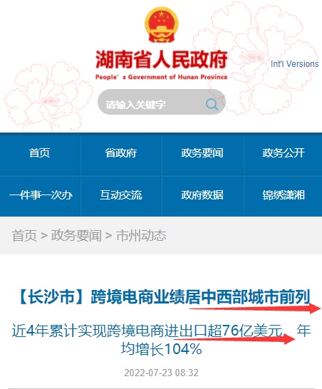 此次会议披露,自2018年7月长沙获批成为第三批跨境电商综合试验区以来,截至目前累计实现跨境电商进出口超76亿美元,年均增长104%,在中西部城市居于前列。