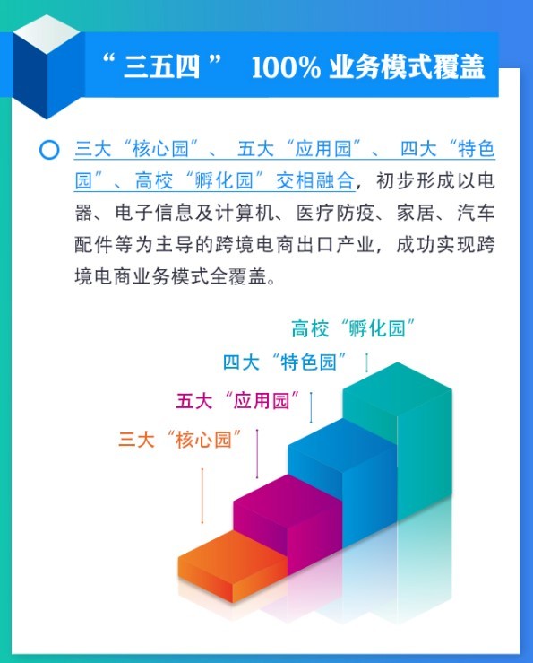在业务模式上,长沙市建立起三大“核心园”、 五大“应用园”、 四大“特色园”、高校“孵化园”,初步形成以电器、电子信息及计算机、医疗防疫、家居、汽车配件等为主导的跨境电商出口产业,成功实现跨境电商业务模式全覆盖。
