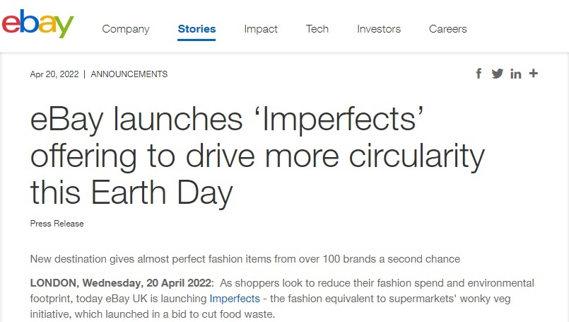 近日,eBay意大利站推出了“Imperfects”平台,作为轻微瑕疵物品的出售平台。此举旨在减少对时尚产品的浪费行为。