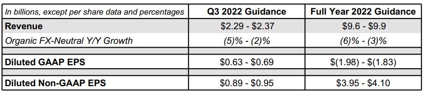 在未来业绩预期方面,eBay预计第三季度营收在22.9-23.7亿美元之间,同比降低5%-2%;预计2022财年营收在96-99亿美元之间,同比降低6%-3%。