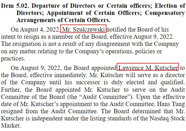 值得一提的是,Wish还宣布董事会变更并强化管理团队建设,Wish创始人Piotr Szulczewski从公司董事会辞职,自2022年8月9日生效;8月9日,董事会已选举Larry Kutscher为独立董事和审计委员会成员,立即生效。