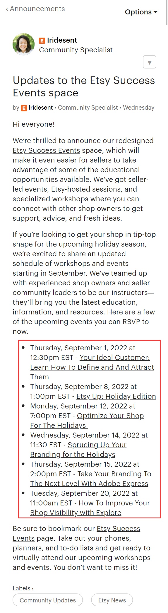据悉,视频评论功能是Etsy对平台的最新改进。下个月,Etsy还将举办几场免费的虚拟卖家活动,提前为接下来的旺季做好准备。其中,Etsy Up是第一个虚拟全球卖家活动,将在美国东部时间9月8日下午1:00举办。