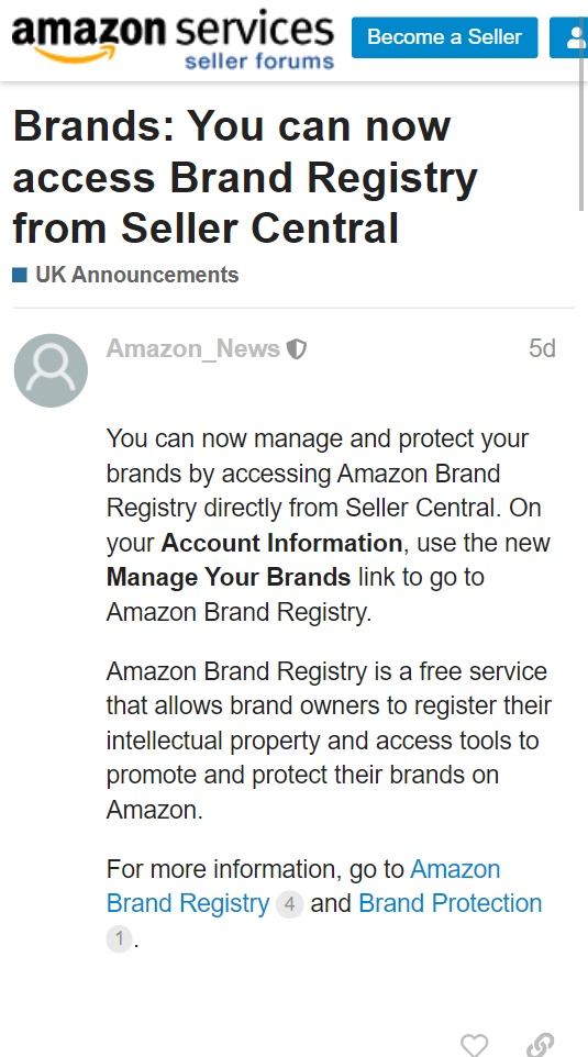 值得一提的是,近日,亚马逊欧洲站发布公告称,卖家现在可以直接从卖家中心访问亚马逊品牌注册来管理和保护卖家的品牌。