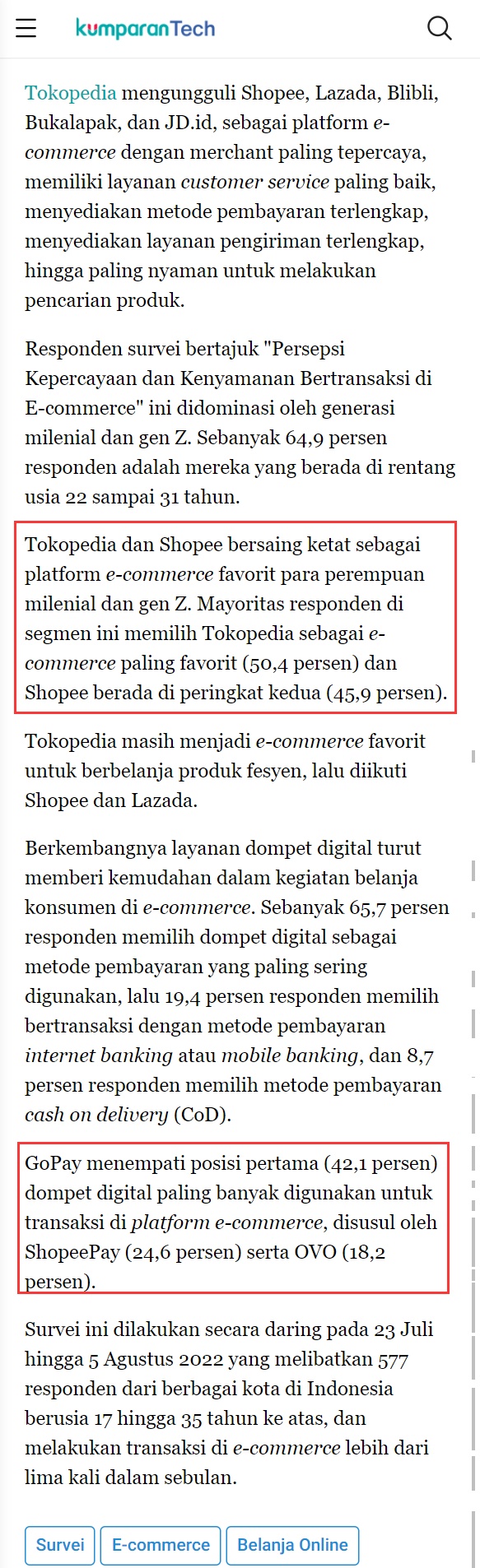 根据调查,Tokopedia是千禧一代和Z世代最常使用的电子商务平台,也是最受信任和认为最安全的平台。