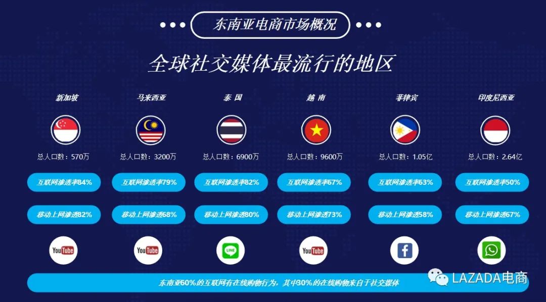 Lazada是东南亚地区最大的网上购物商城。每日网络流量达到了400万以上,顾客来自马来西亚、新加坡、泰国、菲律宾、印度尼西亚、越南等国。毫不夸张地说,东南亚是继中国、印度之后,亚洲最具有诱惑力的电商市场。对于岛国,最方便的购物方式就是网购。东南亚经济迅速崛起,巨大的消费潜力亟待同等水平的供应能力——根据2015年数据统计,目前中国的网络零售普及率为7%,而东南亚只有1%,且正在快速复制中国电商模式,其中所暗示的需求缺口不言而喻。
