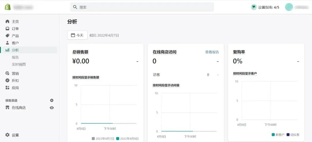 登录后台,您首先看到的页面即为后台主页,方便您更直观地获取独立站运营近况,包括今日商店活动、指标、活动源等,以便您快速决策,让业务更上一层楼。