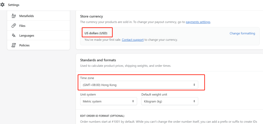 店铺的时区和货币一定要在店铺正式投放出单前设置好。因为一旦出单,店铺的货币就不能自己更改了,需要找客服。