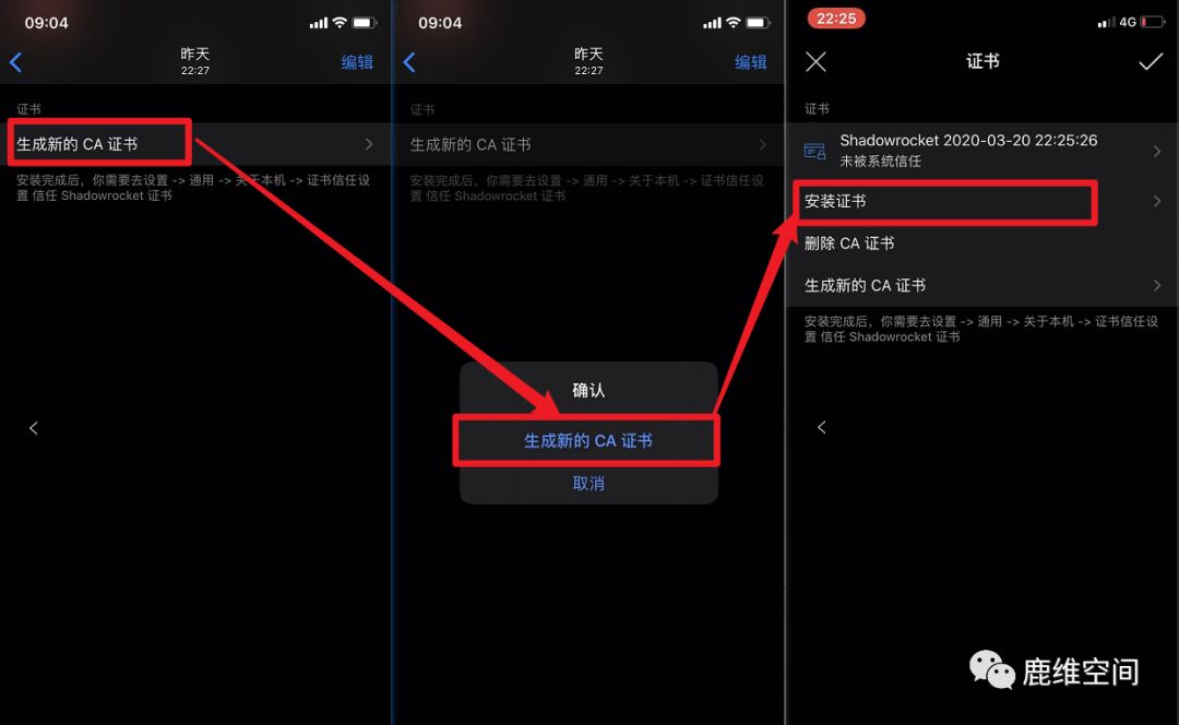 3、点击生成新的CA证书—》生成新的CA证书—》安装证书。