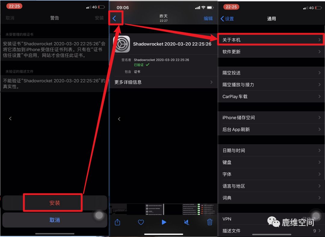 6、点击安装–》返回到通用界面–》关于本机
