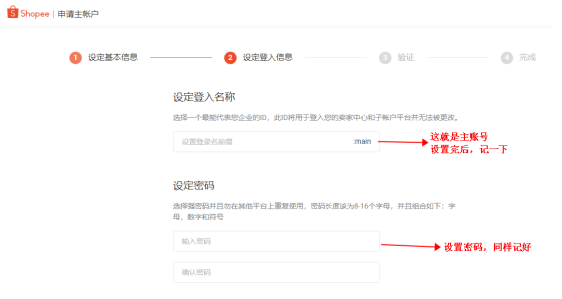 主账号是非常重要的,用于后期该账号下所有的店铺运营,访问,钱包,以及提现等管理,所以账户密码一定要牢记保管好。