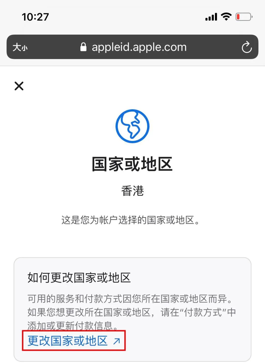 4,在国家或地区页面选择 “更改国家或地区”。若提示无法更改国家或地区,请使用其他方式下载。