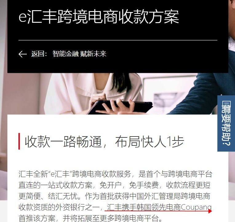 值得一提的是,近日,汇丰携手韩国电商Coupang推出“e汇丰”跨境电商收款方案,并将拓展至更多跨境电商平台。