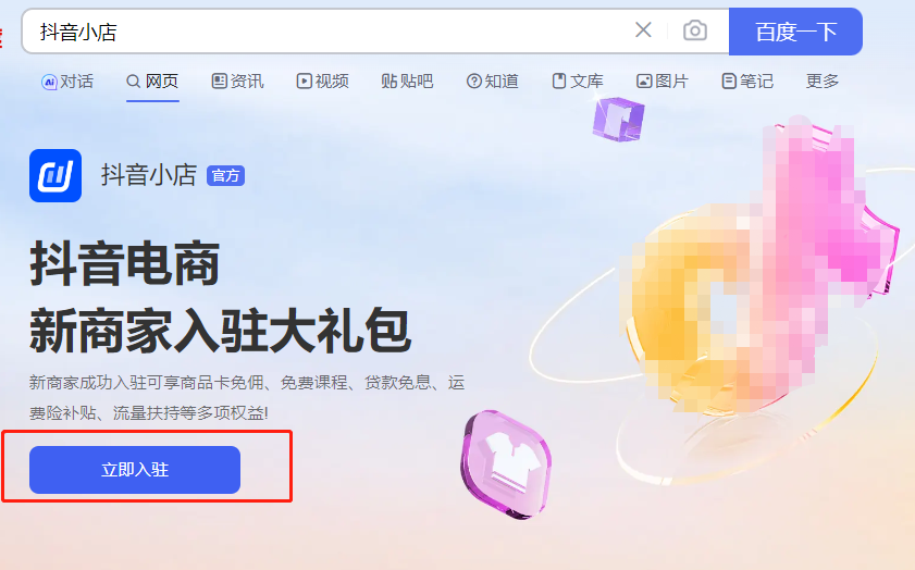 百度搜索“抖音小店”,找到抖音电商官网;点击“立即入驻”进入,然后用手机号码注册登陆。