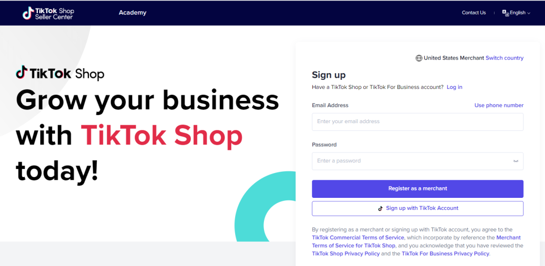 2、如果以法人身份:注册TikTok小店就可以用美国公司主体来入驻