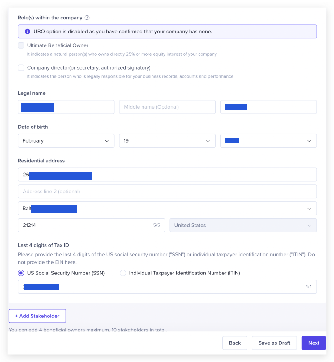 UBO是最终受益人的意思,通俗来讲就是如果你的企业有人持股大于25%,就要选Yes,请根据你的美国公司资料实际情况填写。