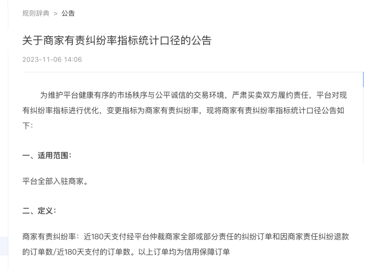 图注:关于商家有责纠纷率指标统计口径的公告完整版