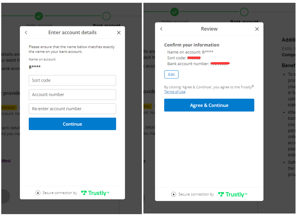 ① 若您是英国站卖家,点击【Bank account】-【Enter account manually】,填写具体的银行账号;
