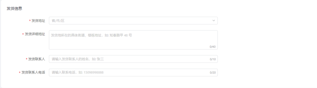 填写发货地址:供应商需在 服务中心-地址信息,自主维护发货地址相关信息,若有更改也需及时在此处更新,利于供应商自查发货地址和完善平台管理。