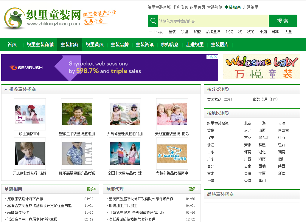 生意网是一个童装贸易信息服务平台,面向全国童装市场,立足于中国湖州织里童装产业带,为生产源头提供专业的综合电商服务,并通过跨平台分销体系向采购批发市场提供整套的销售支持。站内童装通过性别、身高、图案、面料、价格、功能、款式等属性,为用户提供细致的筛选功能,支持代发服务商、供应商、摄影服务商入驻平台。