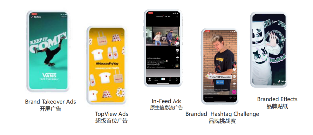 开屏广告:当用户打开TikTok时,视频/图片广告会以全屏的形式出5-60秒;